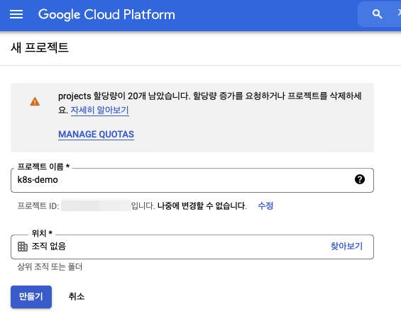 Goole Cloud Plaform에서 새로운 프로젝트를 생성합니다.