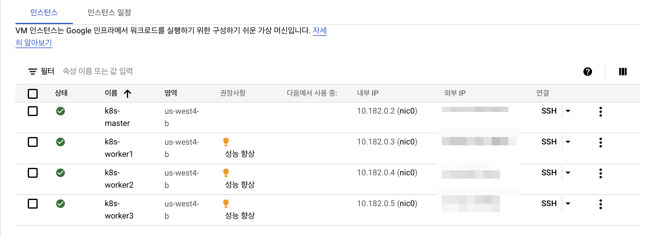 - GCP Compute Engine으로 VM 인스턴스 생성하기 (총 4개)