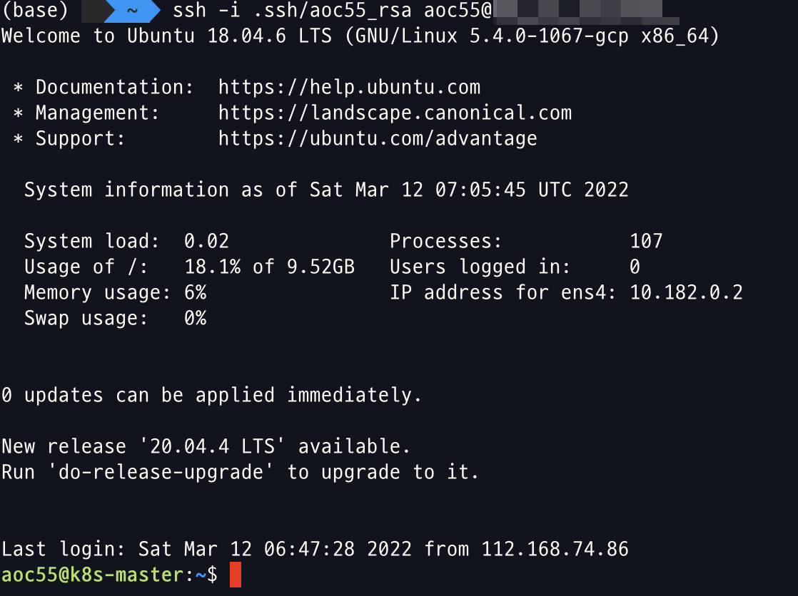 # ssh -i .ssh/id_rsa aoc55@34.167.XX.XX