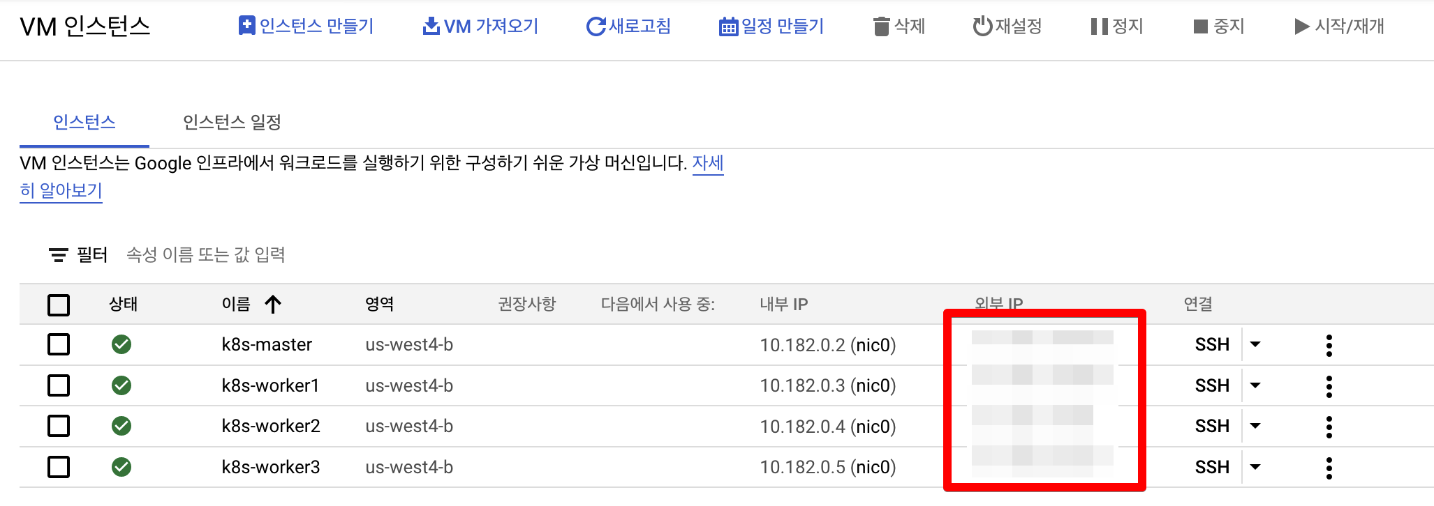 - 외부 IP : 역시 구글콘솔에서 해당 VM의 외부 IP 확인 가능합니다.