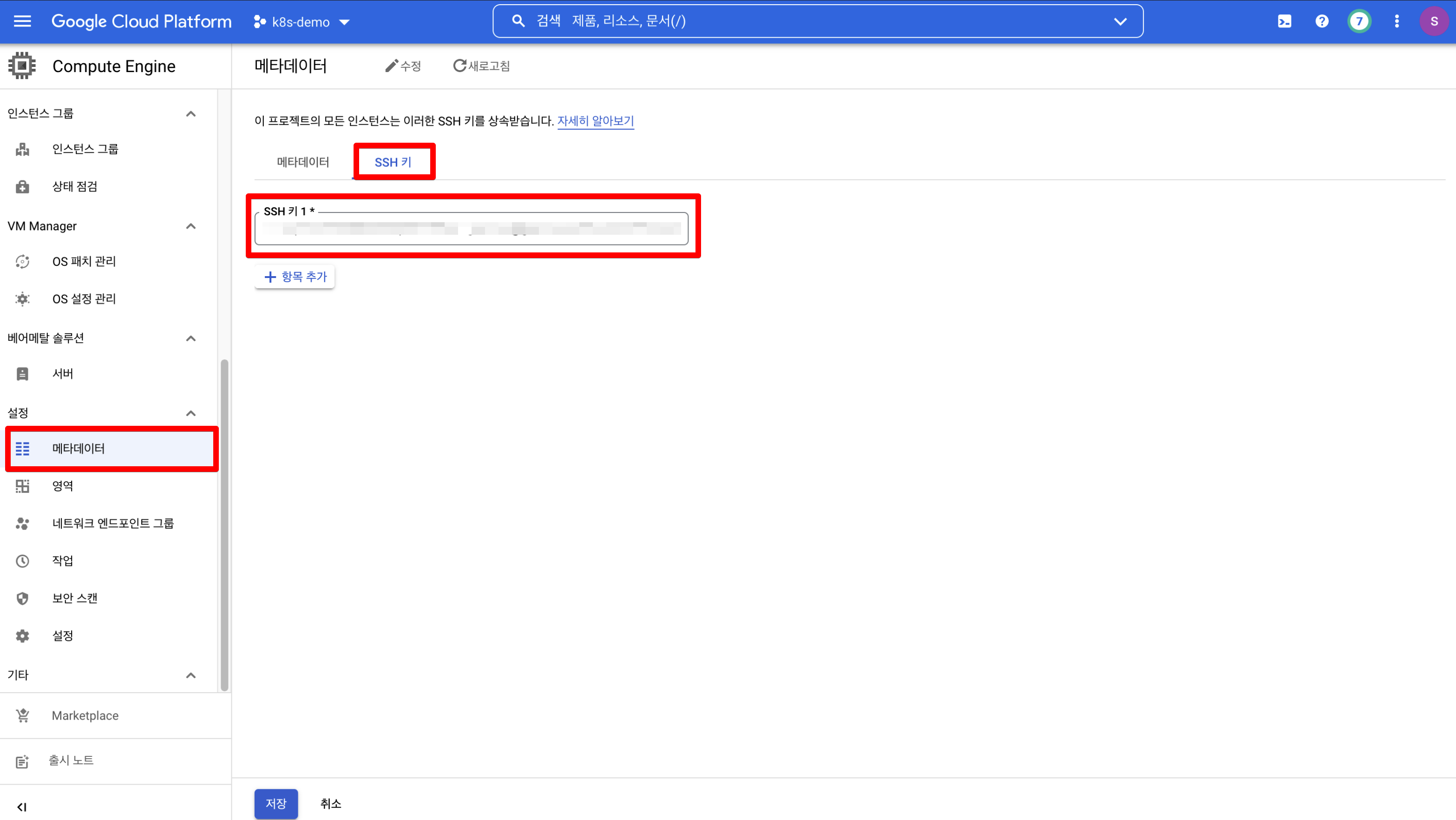 본인이 생성했거나, 혹은 이미 가지고 있는 공개키를 구글 클라우드 콘솔에 등록을 해줍니다.