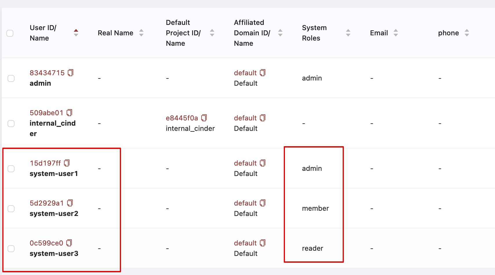 - 모든 Tenant 의 자원 조회 (예: 전체 VM, 네트워크, 볼륨 조회 가능)